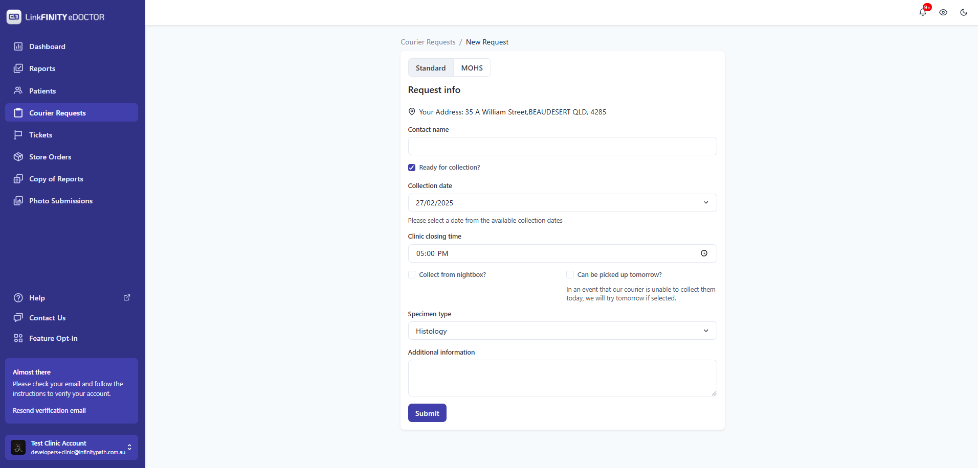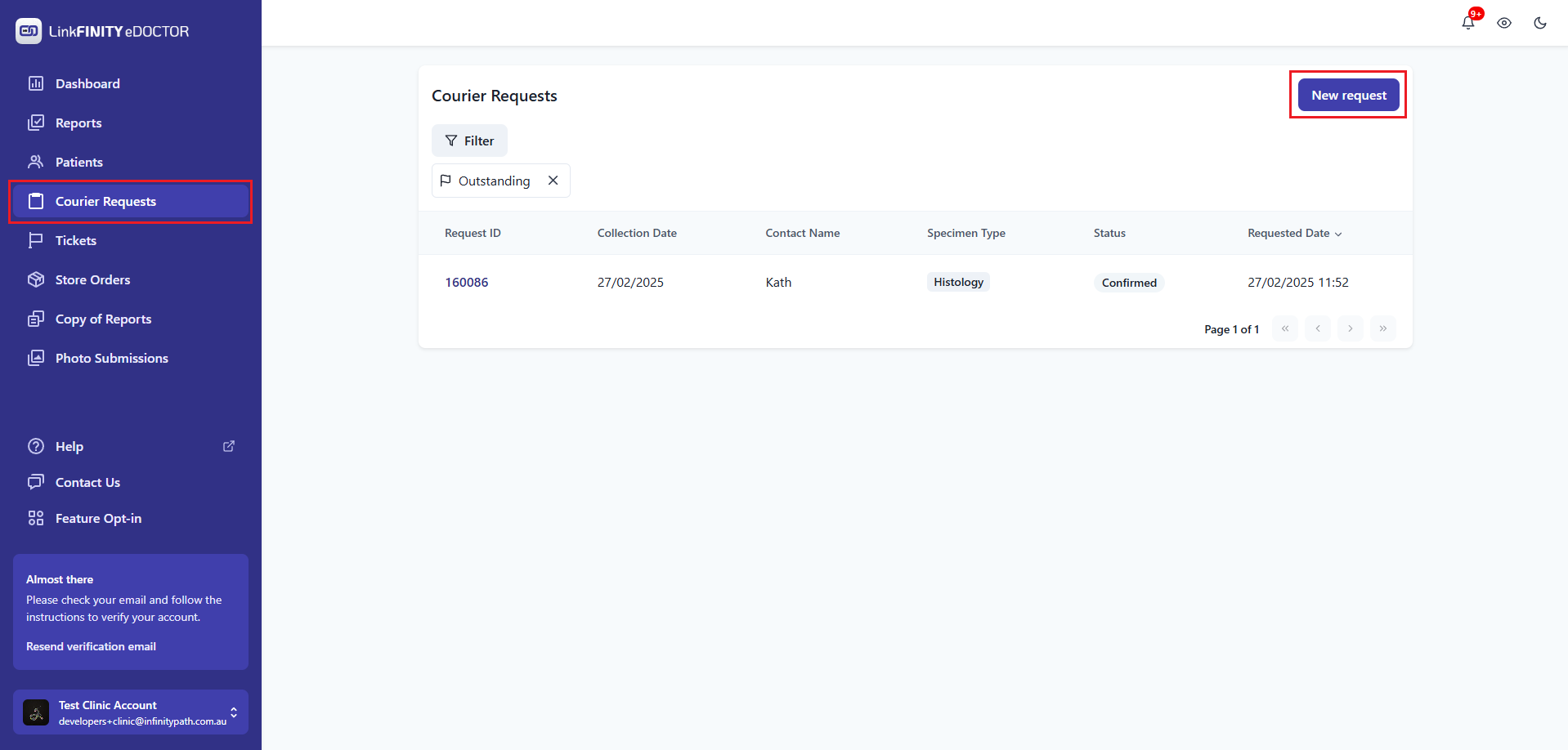 By following these steps, you can efficiently manage and track your courier requests for medical specimens.